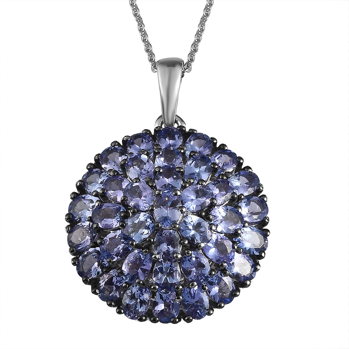 Tanzanite Floral Pendant Necklace 20 Inches in Platinum Over Sterling Silver 6.60 ctw