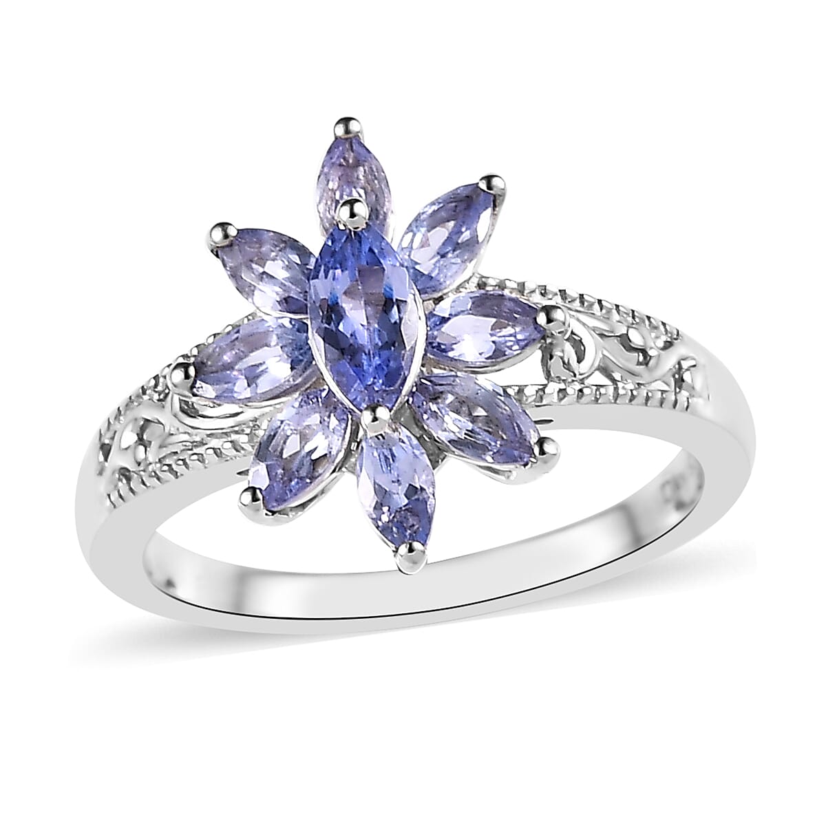 Tanzanite Floral Ring in Platinum Over Sterling Silver 1.00 ctw