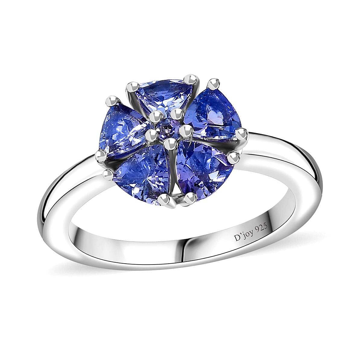 Tanzanite Floral Ring in Platinum Over Sterling Silver (Size 10.0) 1.15 ctw