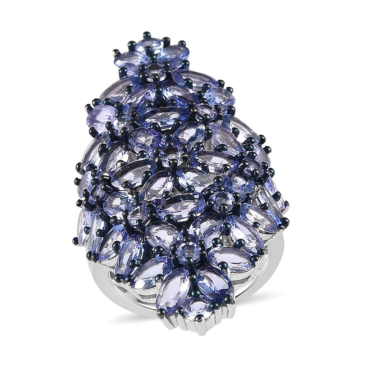 Tanzanite Floral Ring in Rhodium and Platinum Over Sterling Silver (Size 8.0) 9.00 ctw
