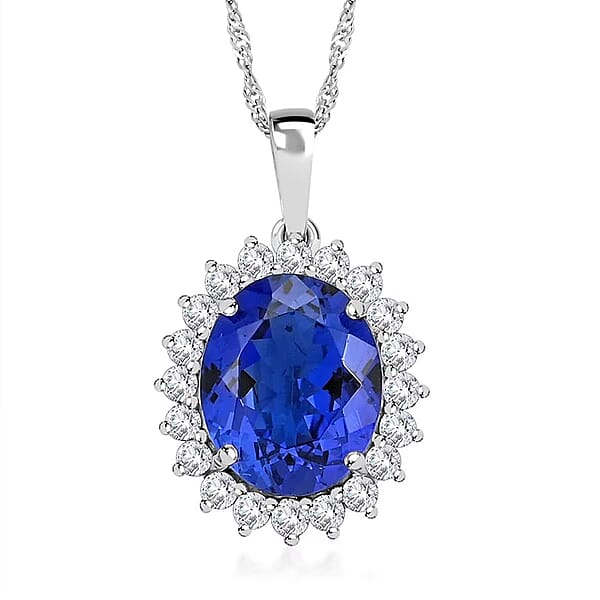 Upgrade your style with this Rhapsody tanzanite and diamond pendant in 950 platinum. This elegant halo pendant highlights AAAA tanzanite brilliance framed by sparkling VS diamonds. Perfect for refined occasions, it radiates timeless sophistication and exceptional craftsmanship.