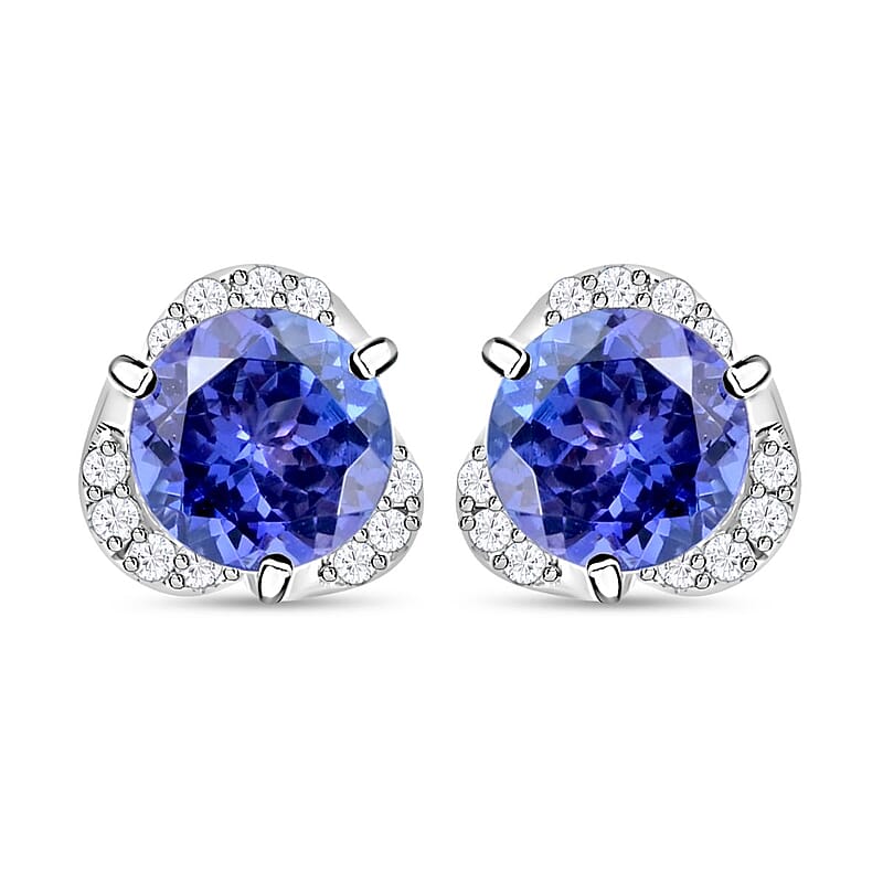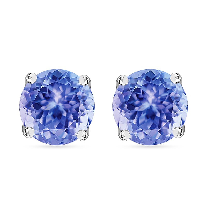D'Joy Tanzanite 1.80 ctw Solitaire Stud Earrings in Platinum Over Sterling Silver