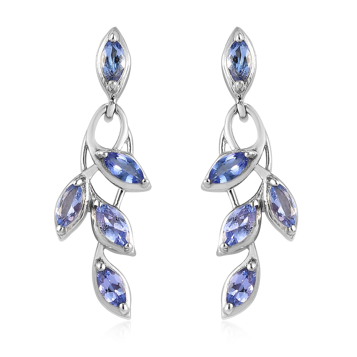 Tanzanite Leaf Earrings in Platinum Over Sterling Silver 1.60 ctw
