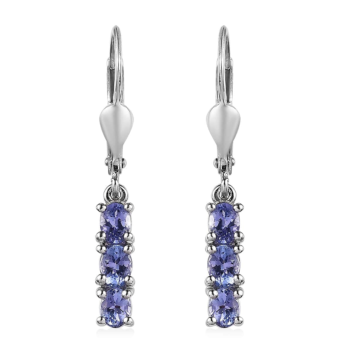 Tanzanite Lever Back Earrings in Platinum Over Sterling Silver 1.10 ctw