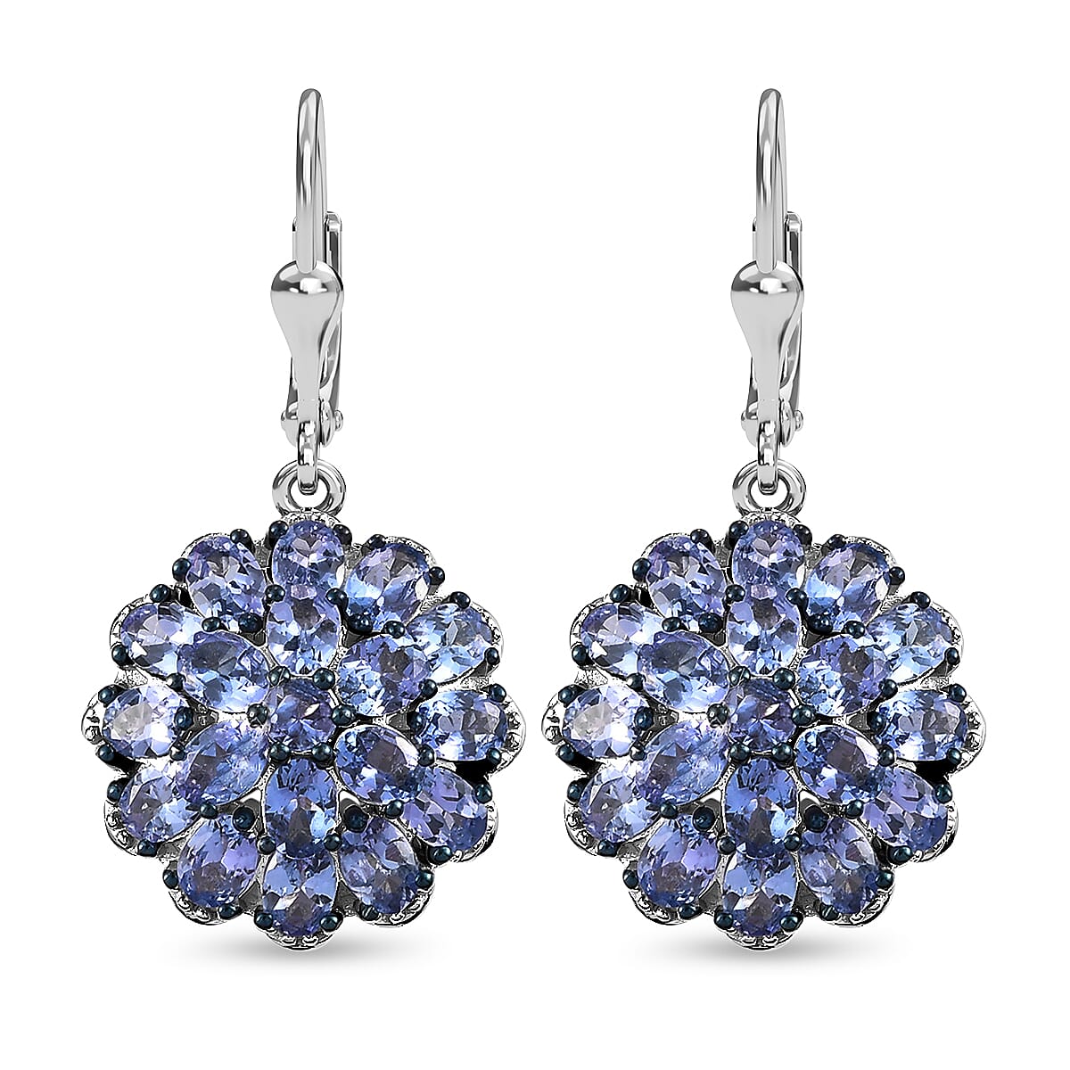 Tanzanite Lever Back Floral Earrings in Platinum Over Sterling Silver 5.40 ctw