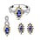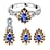 Step into a world of mesmerizing beauty with our tanzanite jewelry set. This three-piece set, including stud earrings, a ring, and a pendant, celebrates elegance and sophistication. Each piece, adorned with enchanting tanzanite and accented with sapphire and zircons in a floral and infinity design, is crafted in platinum over sterling silver. It's a tribute to the rare and exotic tanzanite, a gemstone that captivates with its deep blue-violet hues.