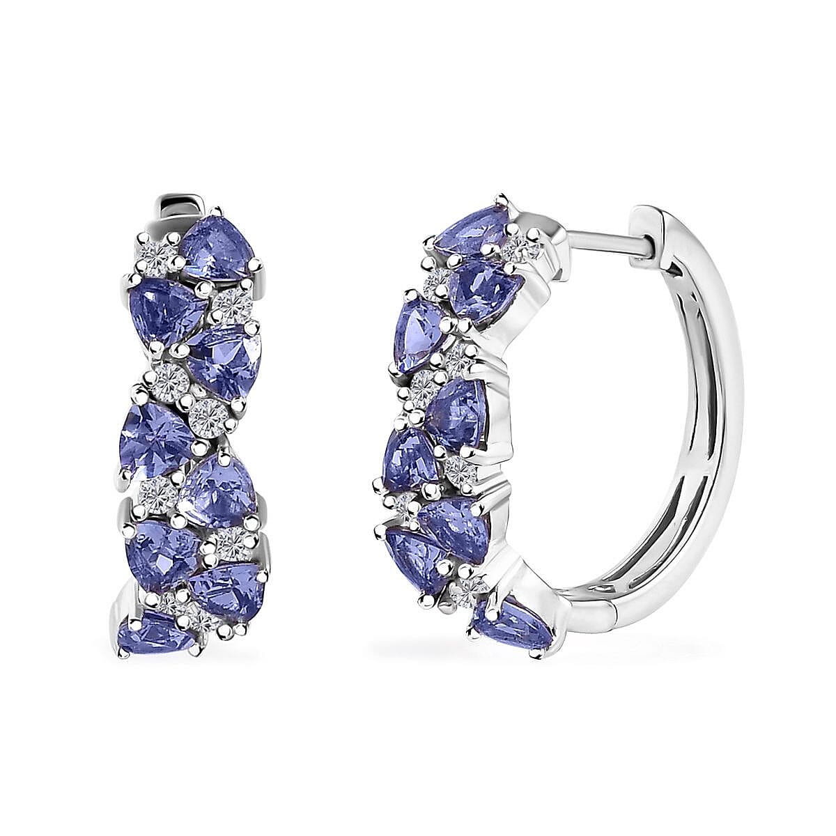 Tanzanite, Moissanite Hoop Earrings in Platinum Over Sterling Silver 2.30 ctw
