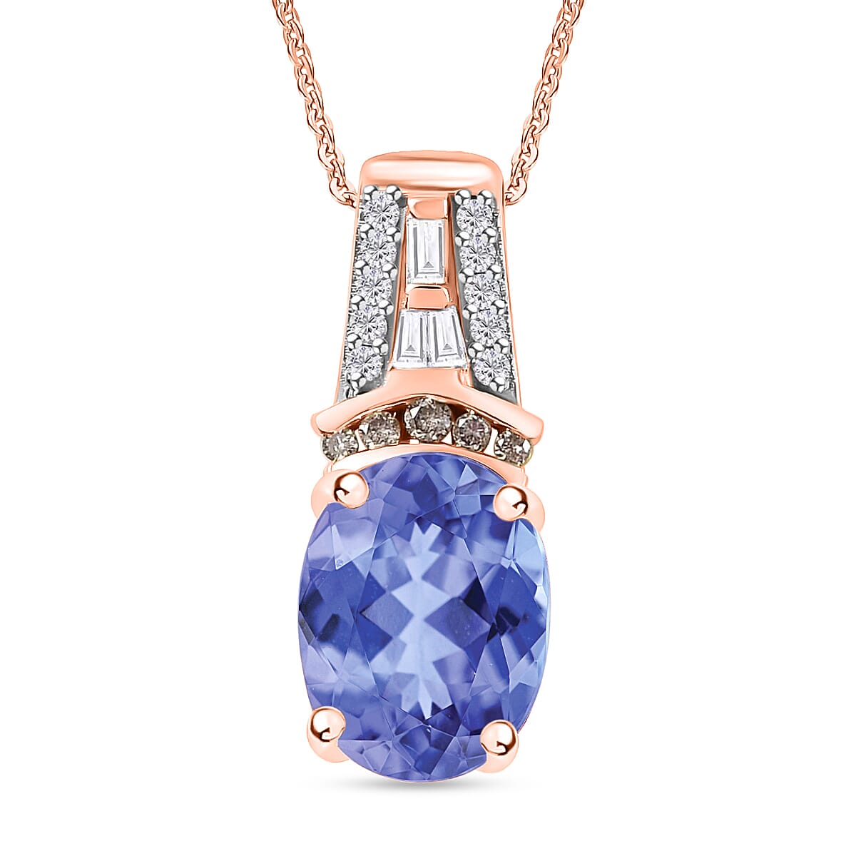 Tanzanite, Natural Champagne and White Diamond 2.10 ctw Pendant Necklace in 18K Vermeil Rose Gold Over Sterling Silver 20 Inches (Del. in 10-12 Days)