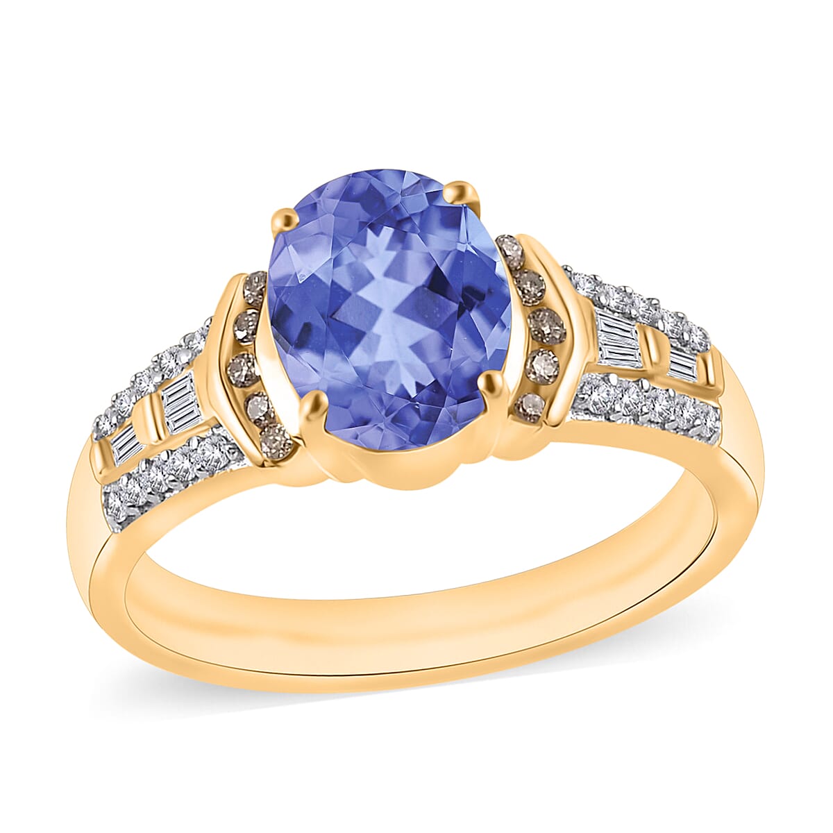 Tanzanite, Natural Champagne and White Diamond 2.23 ctw Ring in 18K Vermeil Yellow Gold Over Sterling Silver (Del. in 10-12 Days)