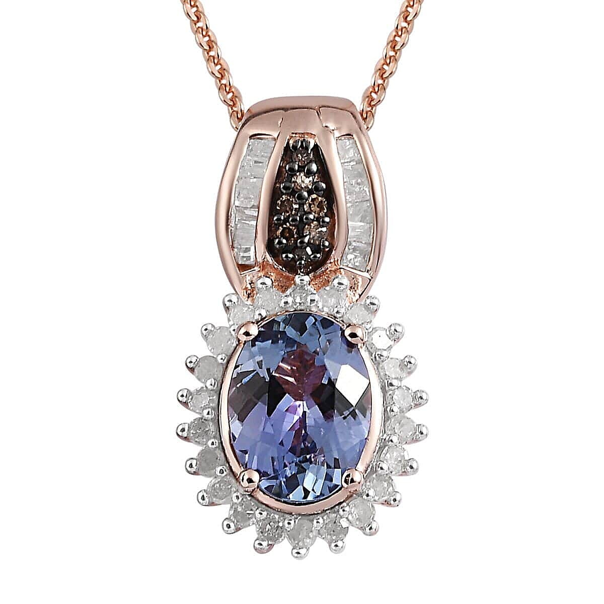 Tanzanite, Natural Champagne and White Diamond Pendant Necklace 20 Inches in Vermeil RG Over Sterling Silver 1.50 ctw