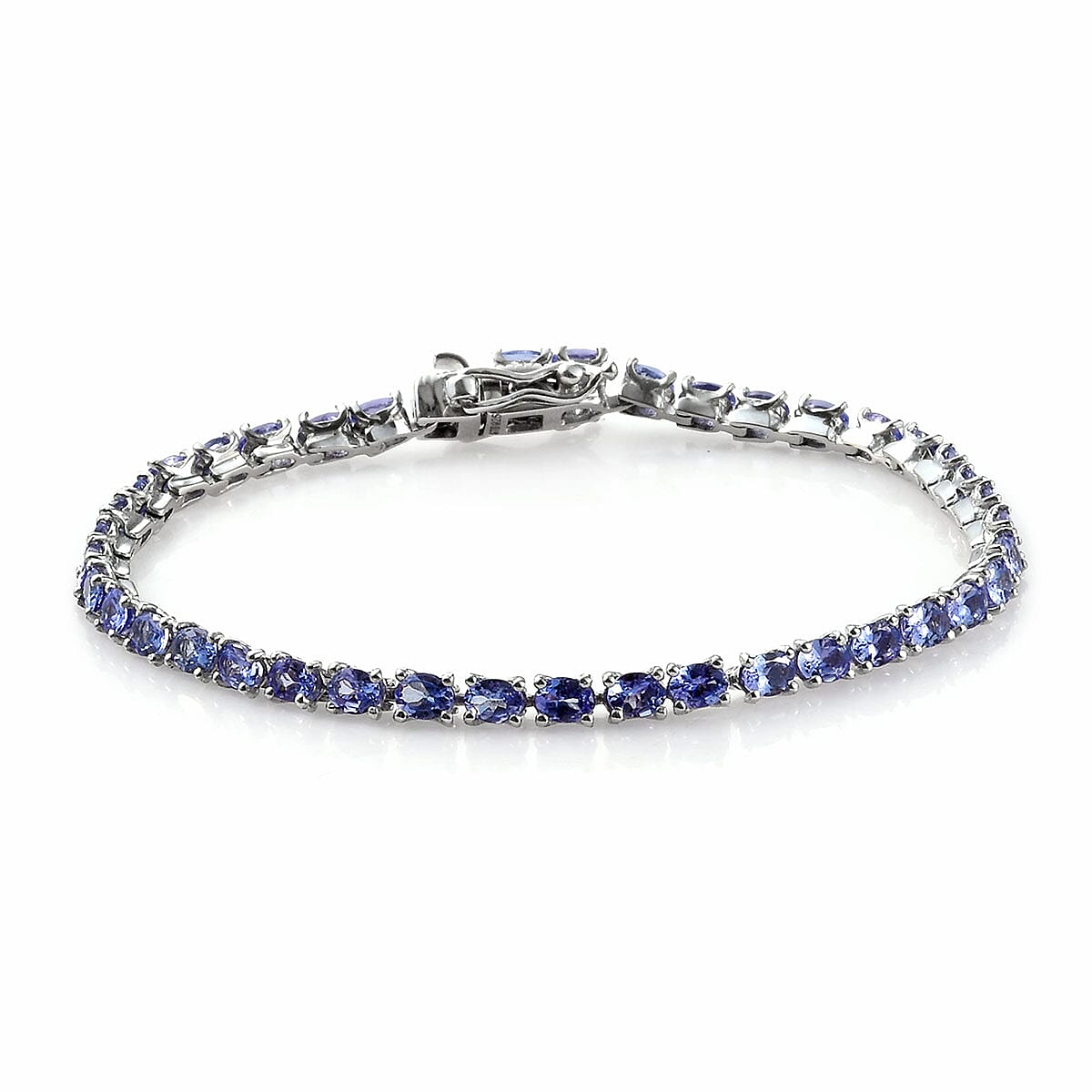 Tanzanite Tennis Bracelet in Platinum Over Sterling Silver (7.25 In) 6.40 ctw