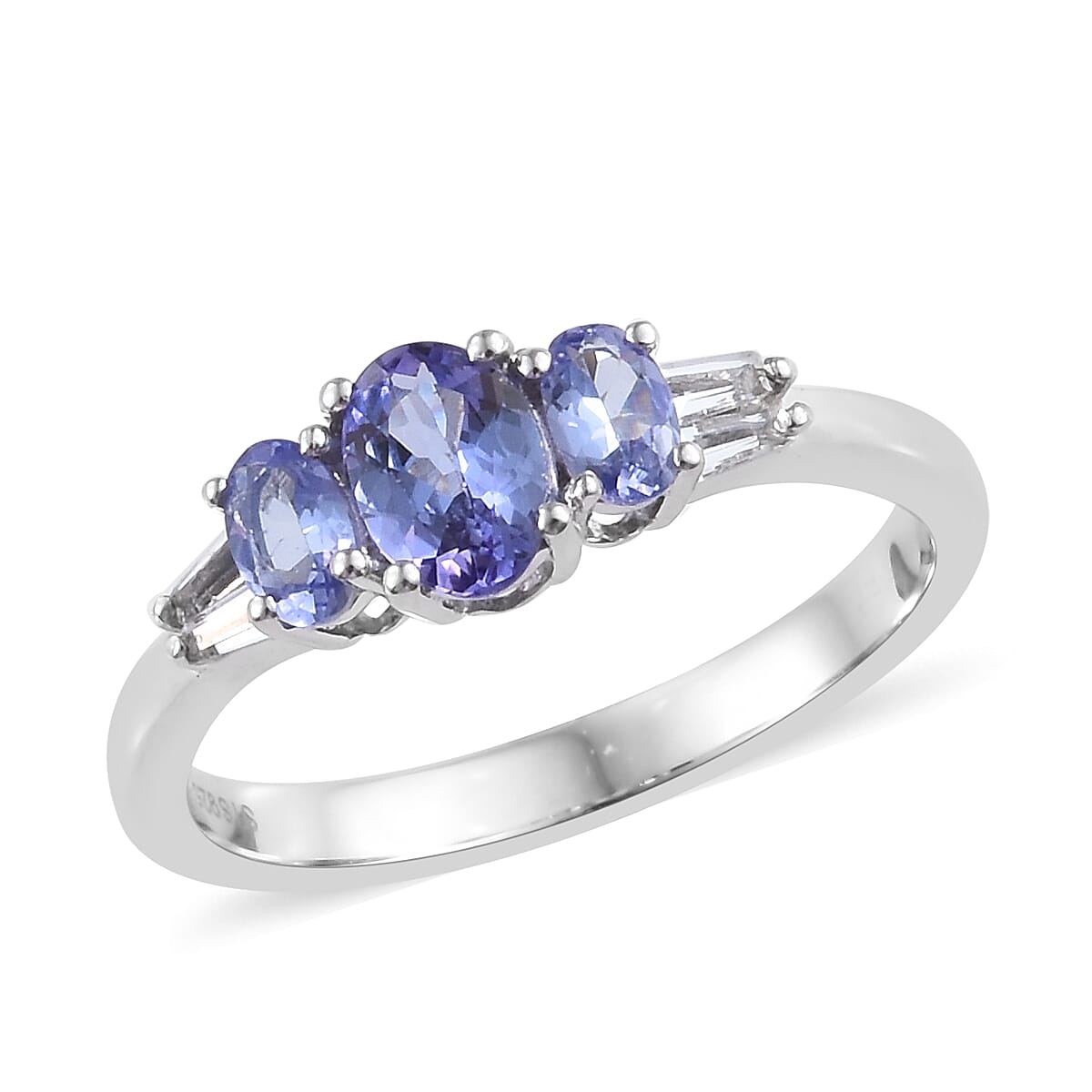 Tanzanite, White Topaz Ring in Platinum Over Sterling Silver (Size 6.0) 1.40 ctw