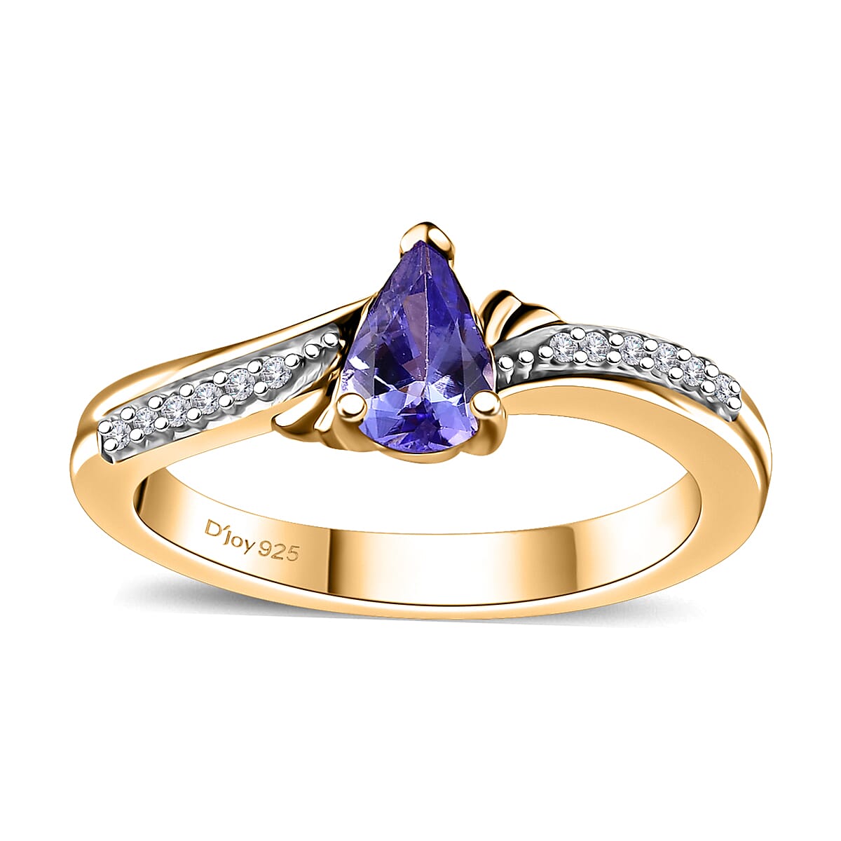 Tanzanite, White Zircon Ring in 18K Vermeil YG Over Sterling Silver (Size 10.0) 0.50 ctw