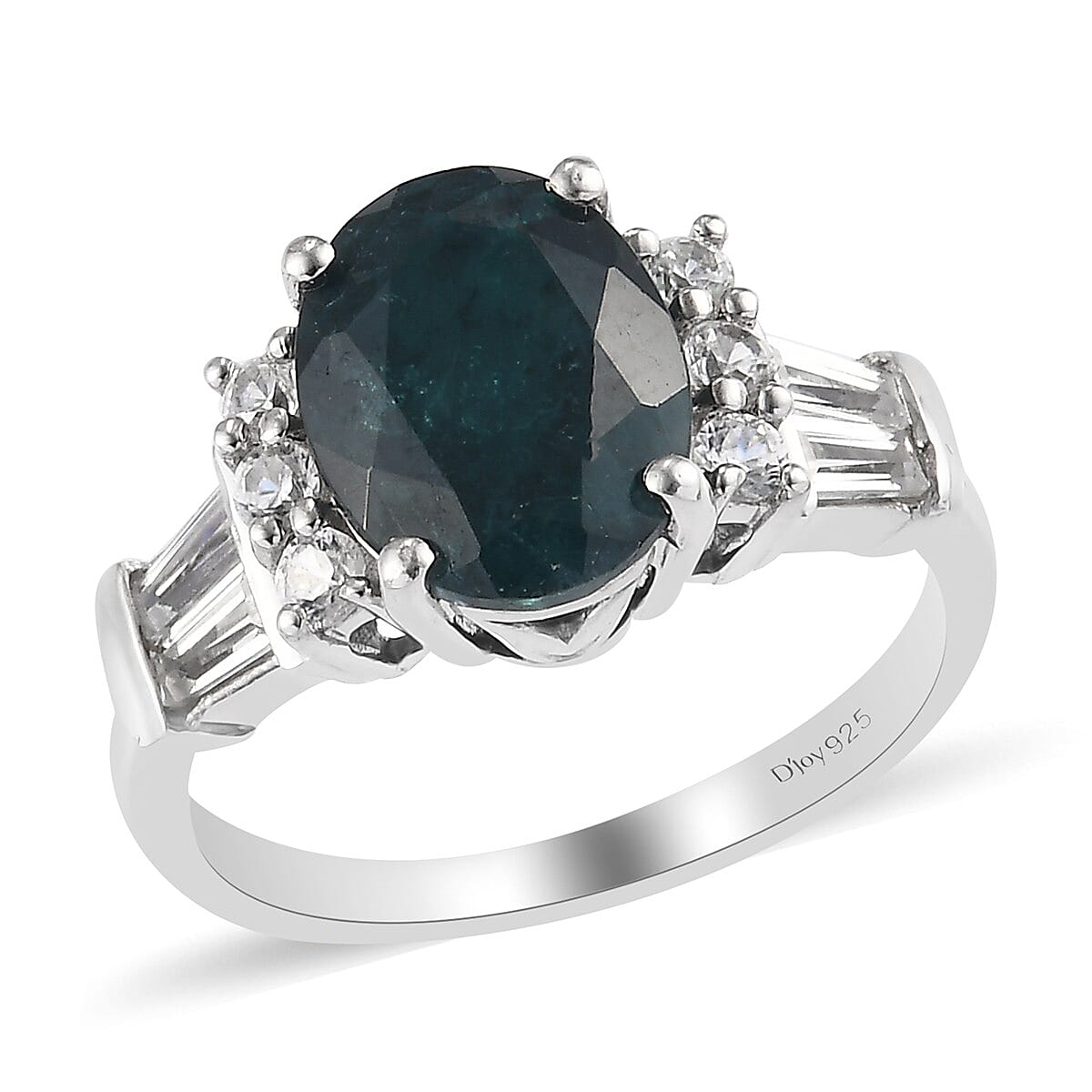 Teal Grandidierite and Natural White Zircon Ring in Platinum Over Sterling Silver (Size 7.0) 3.60 ctw