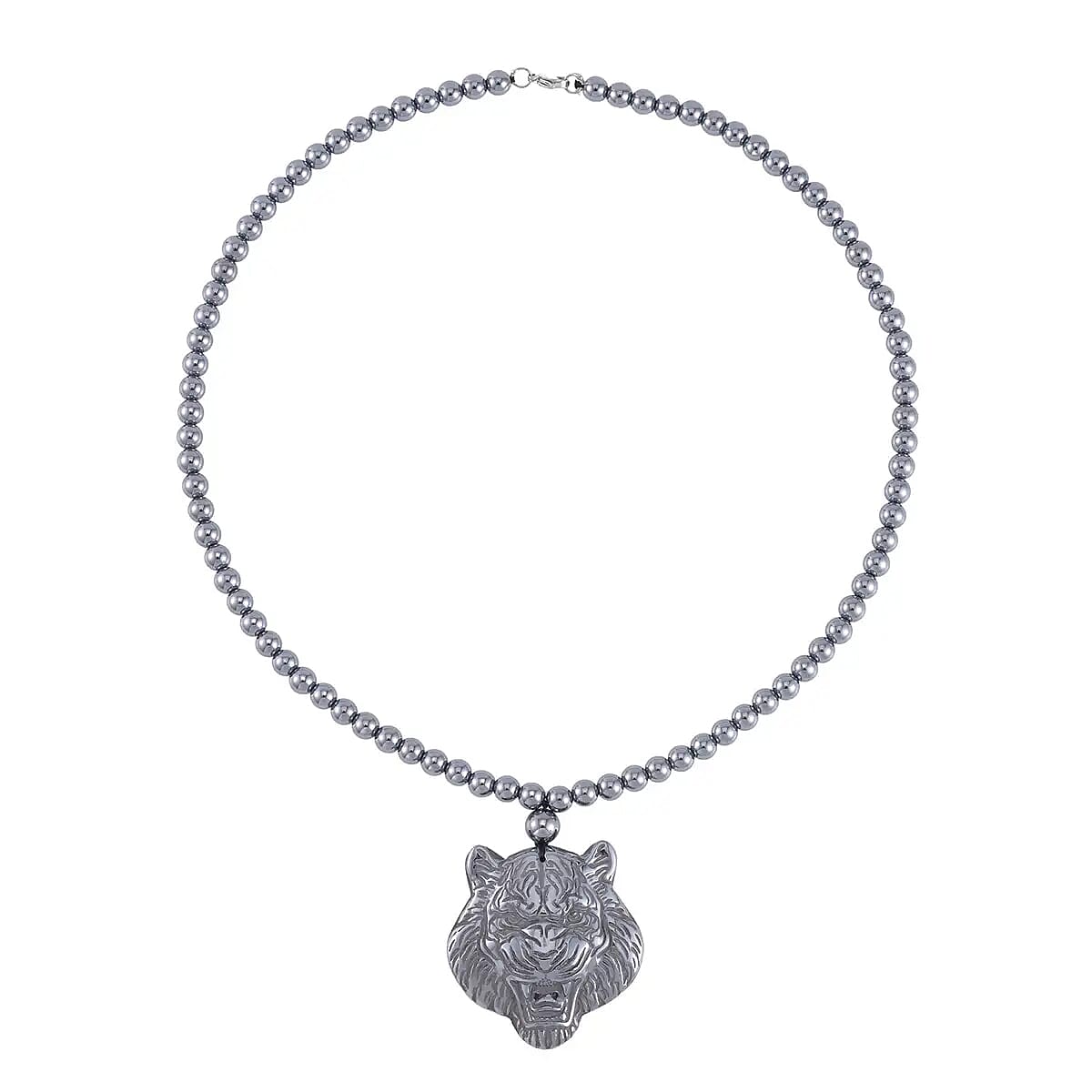 Terahertz 219.10 ctw Carved Lion Pendant with Beaded Necklace 20 Inches in Rhodium Over Sterling Silver