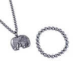 Terahertz 293.00 ctw Carved Elephant Pendant with Beaded Necklace and Stretch Bracelet in Rhodium Over Sterling Silver 20 Inches
