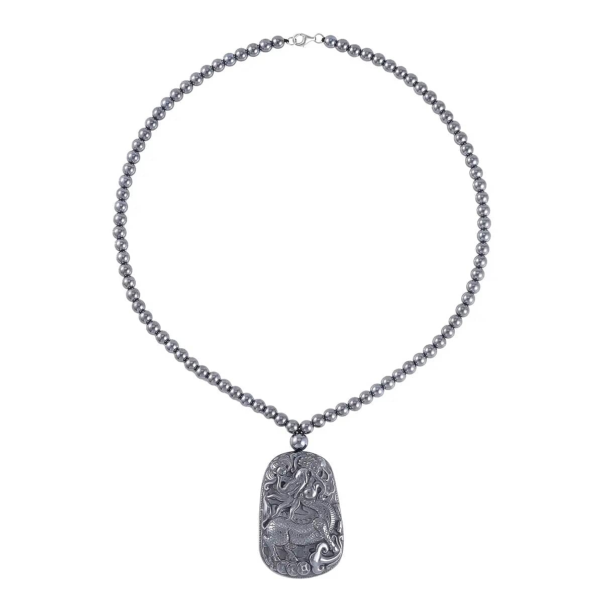 Elevate your style to soaring heights with our terahertz carved pendant, a true masterpiece in jewelry craftsmanship that will ignite your inner strength and captivate onlookers with its bewitching beauty. Crafted in rhodium over sterling silver, this exquisite pendant with a beaded necklace of 20 inches is more than just an accessory – it's a symbol of empowerment and elegance.