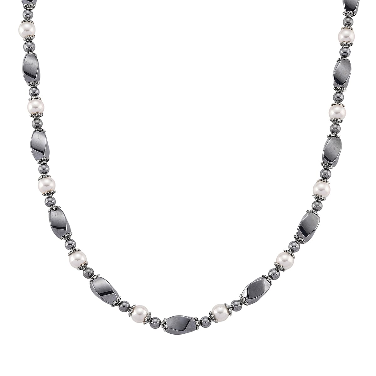 Terahertz 70.00 ctw and White Shell Pearl Necklace (18-20 Inches) with Lion Charm in Silvertone and Stainless Steel