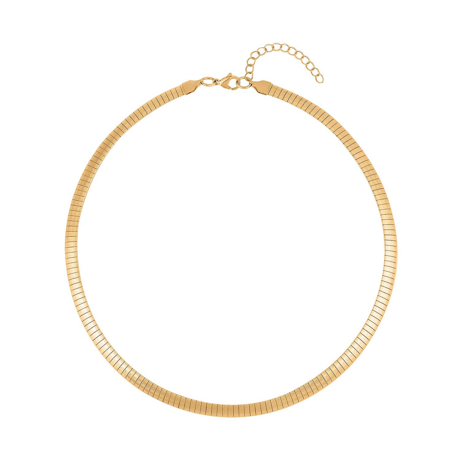 The texture omega chain necklace is a sleek accessory made from smooth, rounded metal plates linked to form a flexible, collar-like shape. Crafted in durable 316L stainless steel, this piece offers a substantial visual impact and is suitable for various occasions.