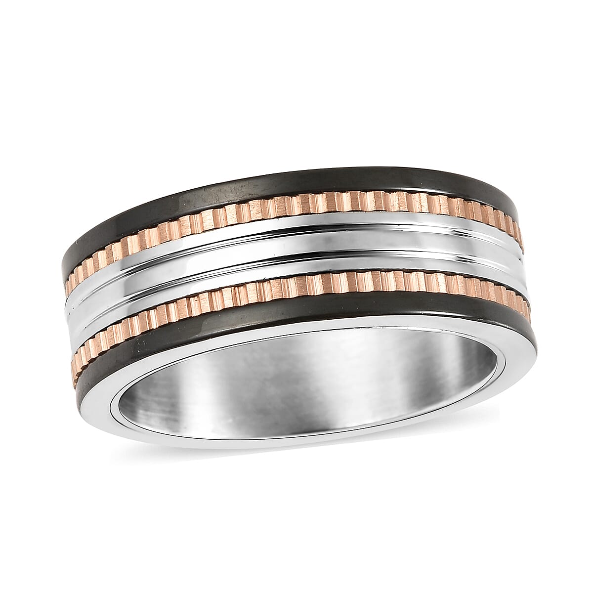 Textured Spinner Ring in Dualtone Stainless Steel (Size 7.75)