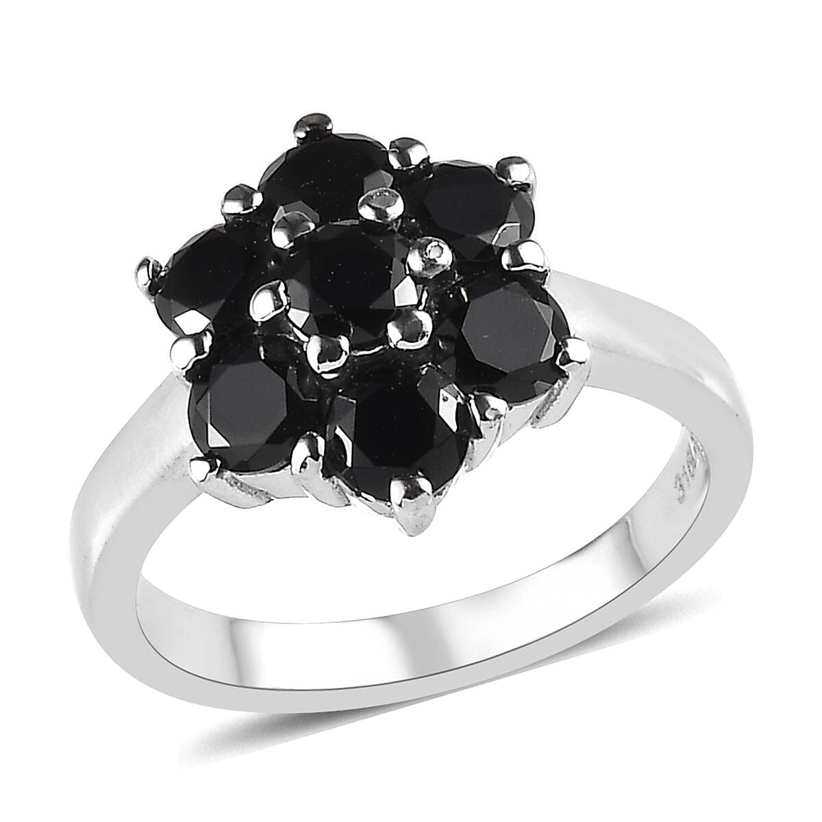 Thai Black Spinel 1.60 ctw Floral Ring in Stainless Steel (Size 8.0)
