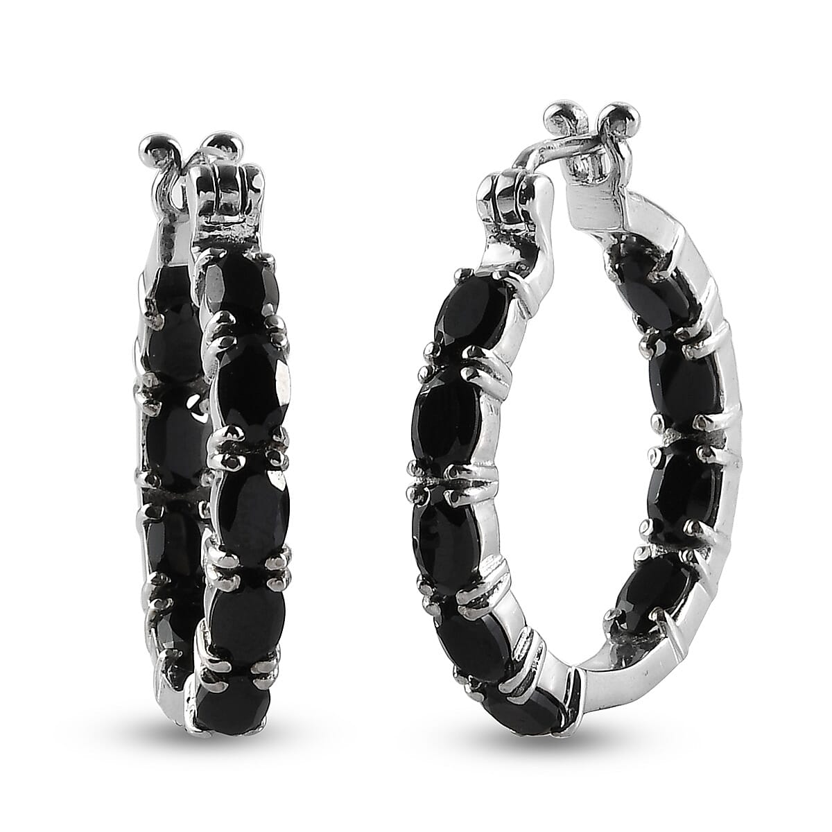 Thai Black Spinel 10.40 ctw Hoop Earrings in Stainless Steel