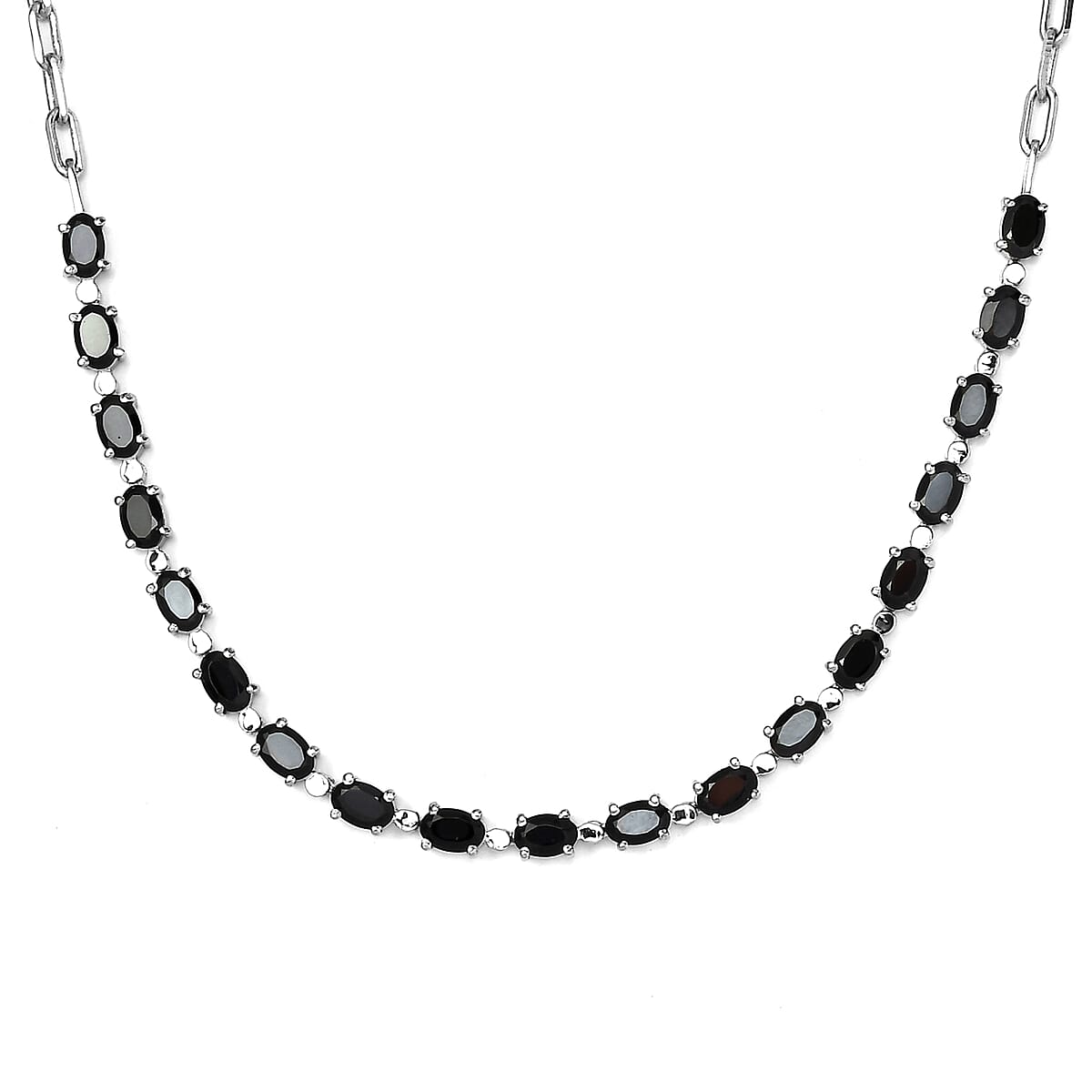 Thai Black Spinel 11.10 ctw Necklace in Platinum Bond and Stainless Steel 18 Inches