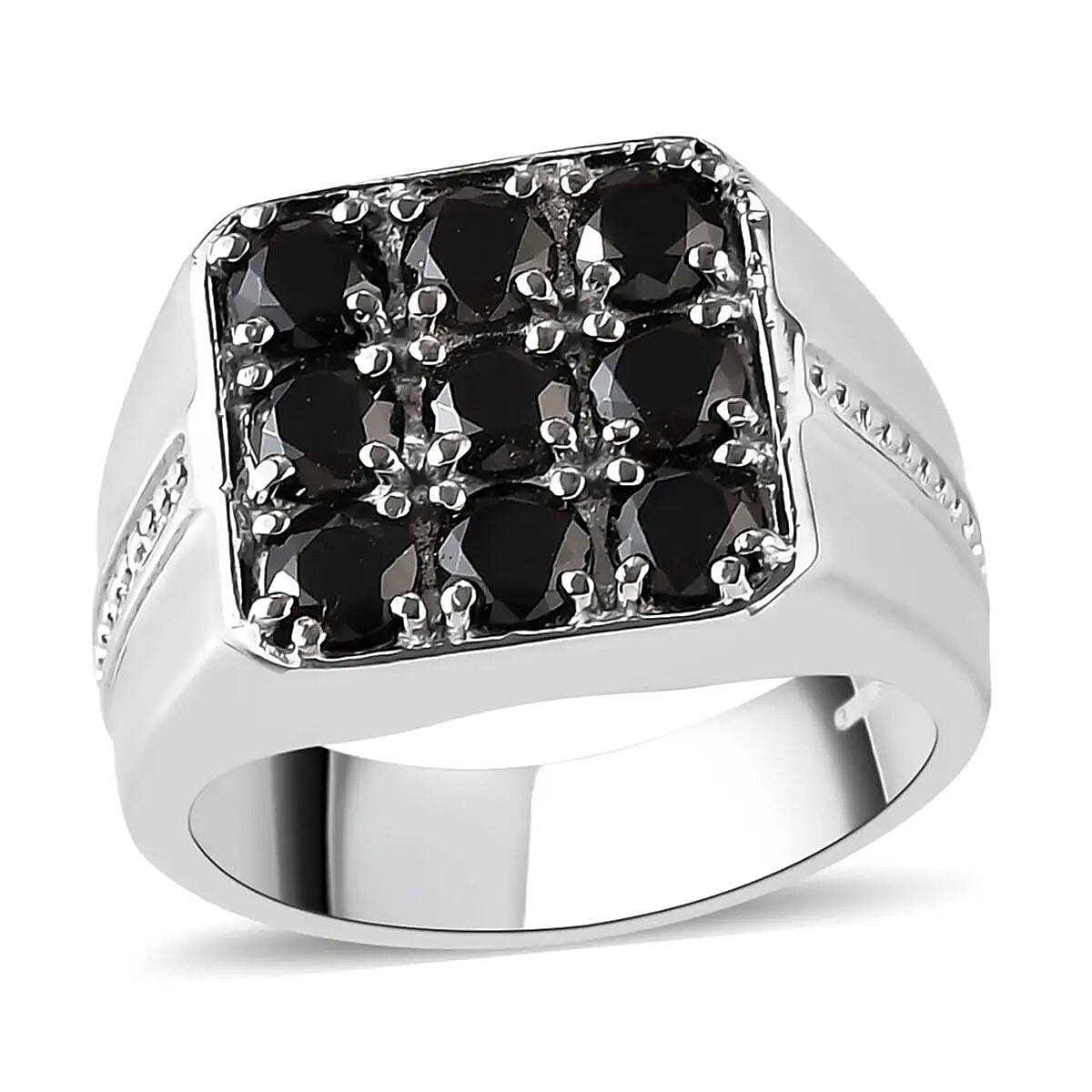 Thai Black Spinel 2.30 ctw Men's Ring in Stainless Steel (Size 14.0)