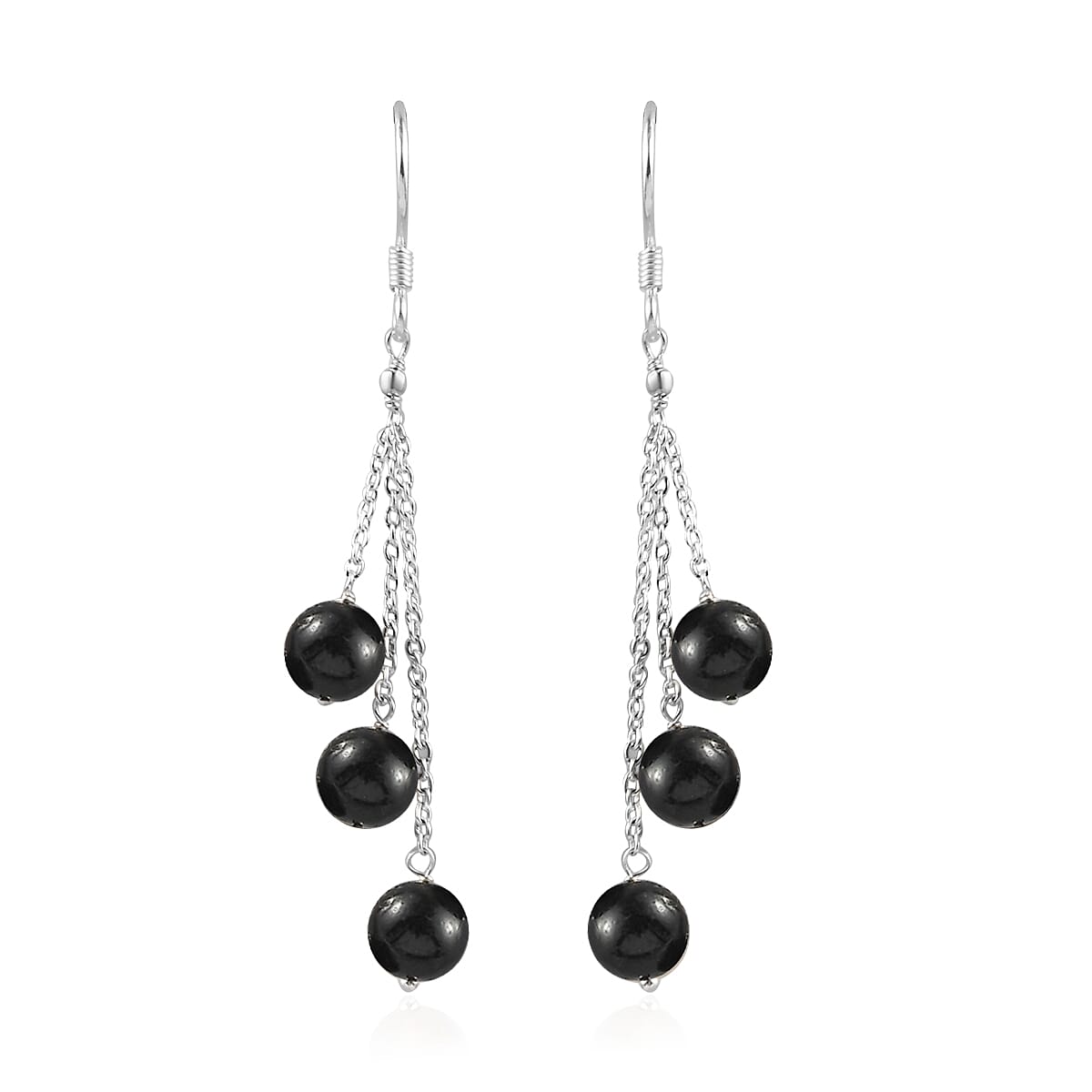 Thai Black Spinel 3 Stone Drop Earrings in Sterling Silver 20.25 ctw