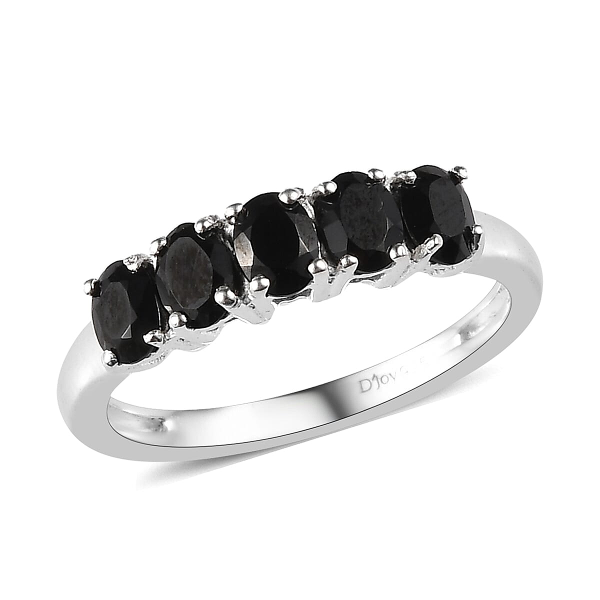 Thai Black Spinel 5 Stone Ring in Sterling Silver (Size 5.0) 1.10 ctw