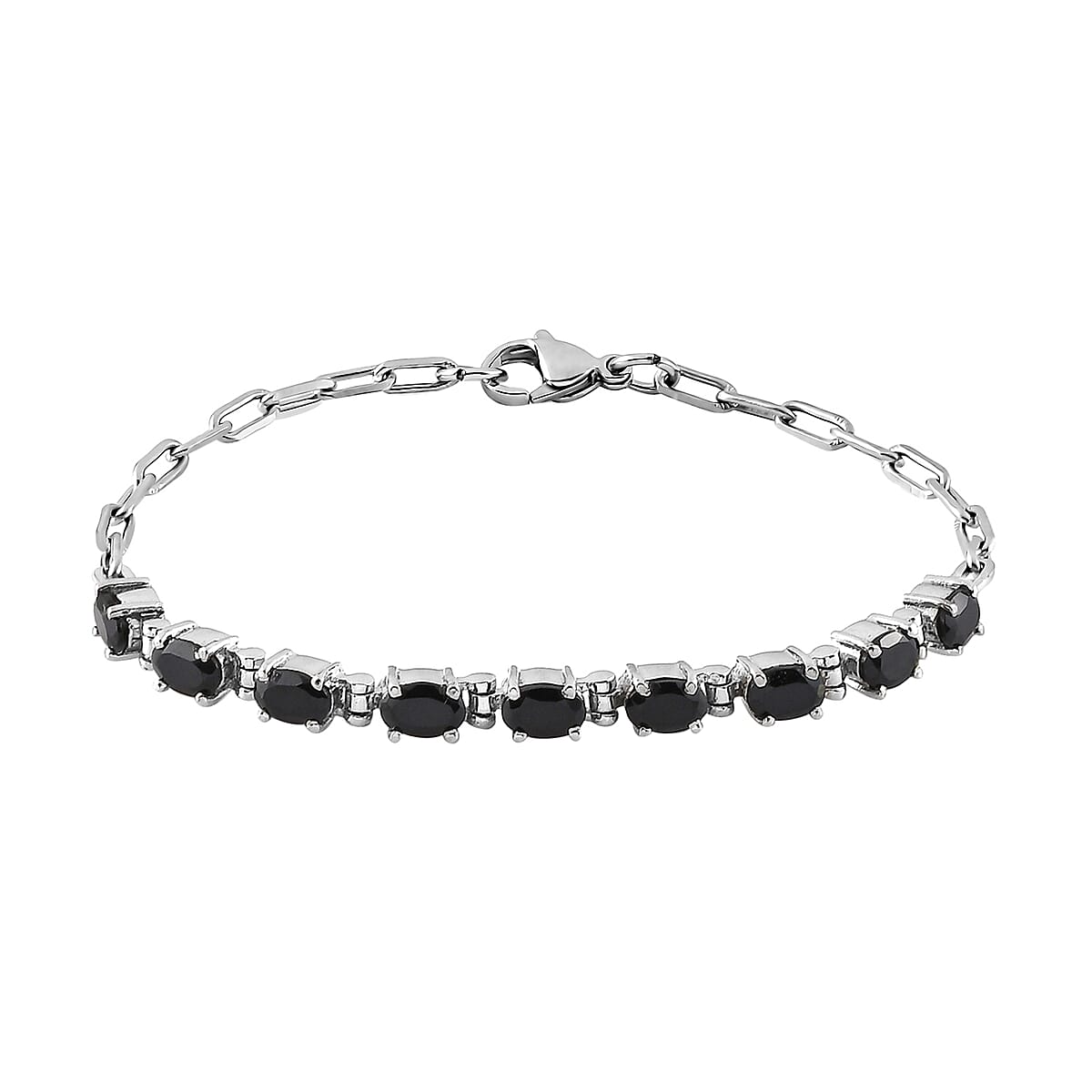 Thai Black Spinel 5.00 ctw Bracelet in Platinum Bond and Stainless Steel (7.25 In)