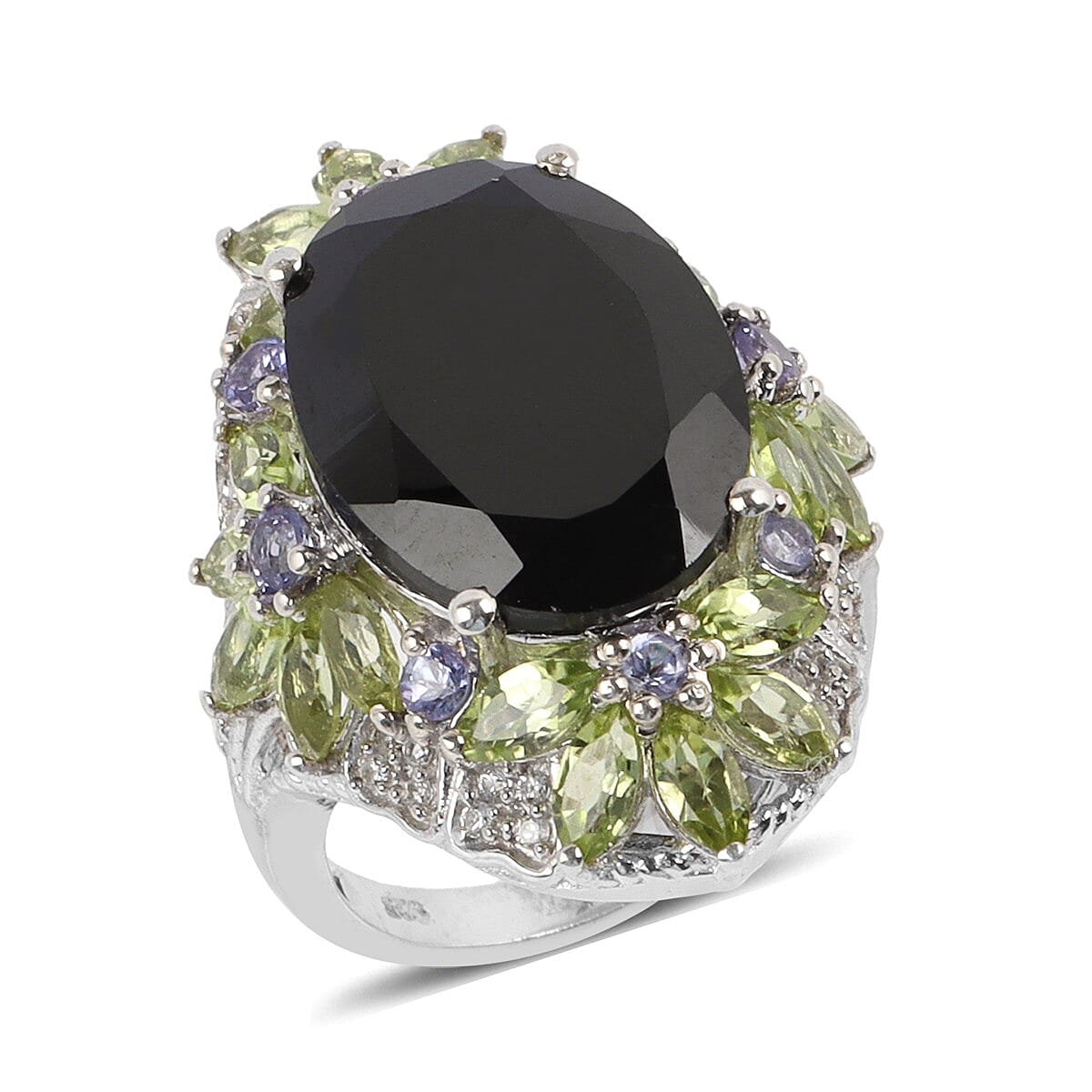 Thai Black Spinel and Multi Gemstone Ring in Platinum Over Sterling Silver 10.82 Grams 19.00 ctw