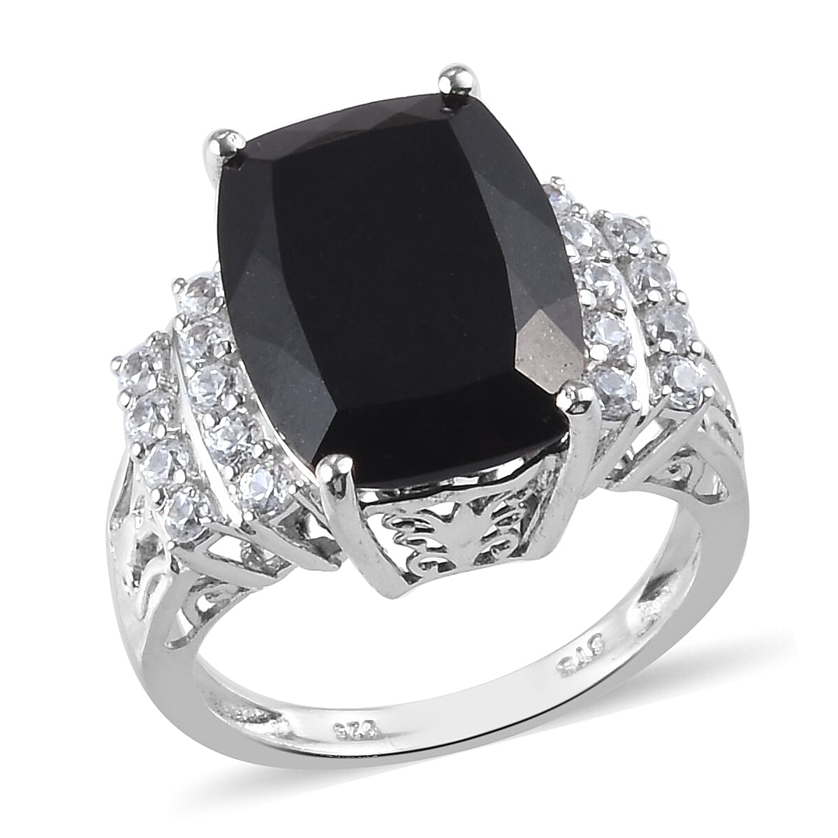 Thai Black Spinel and Natural White Zircon Ring in Platinum Over Sterling Silver (Size 9.0) 13.50 ctw