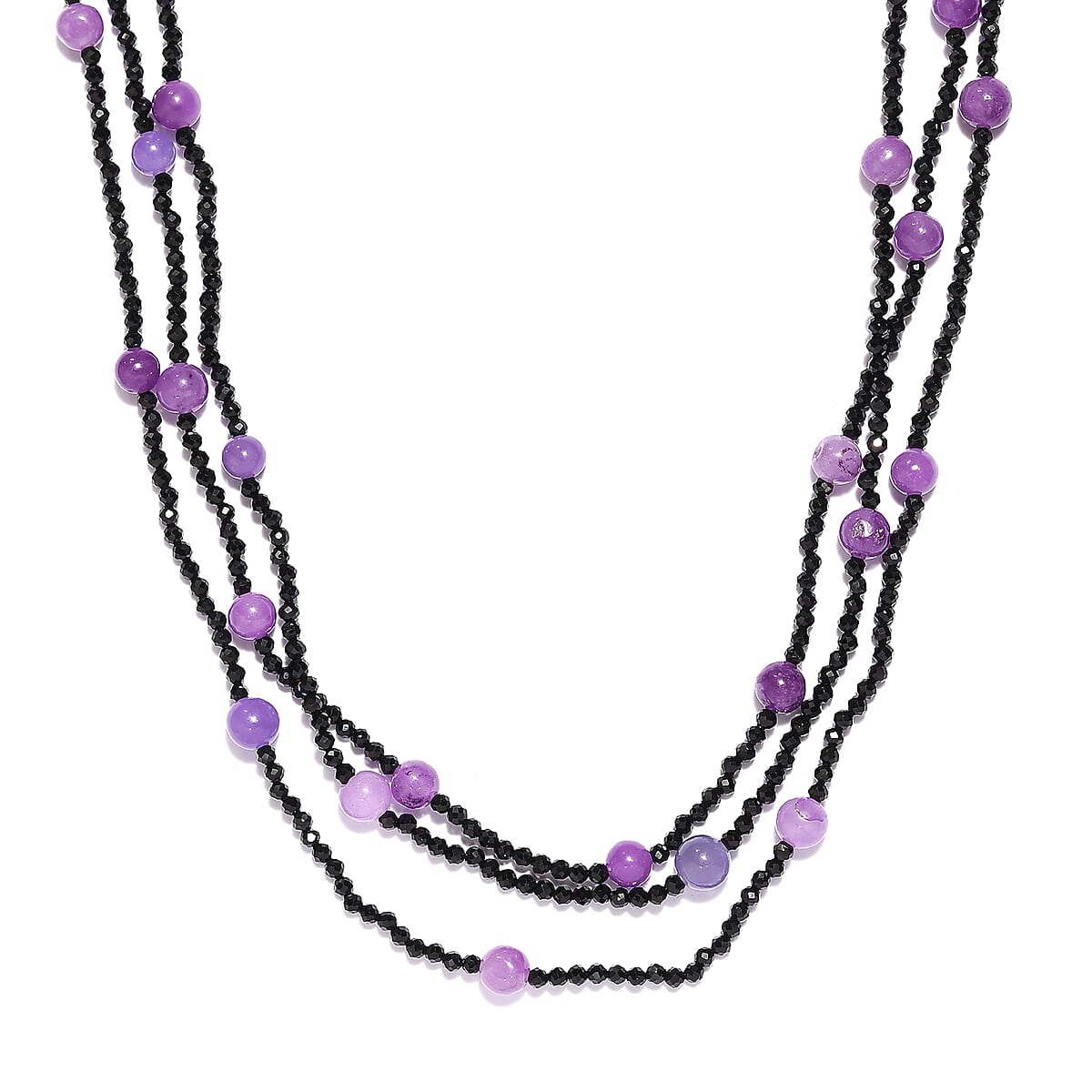 Thai Black Spinel and Purple Jade (D) Beaded Necklace 20 Inches in Sterling Silver 119.30 ctw