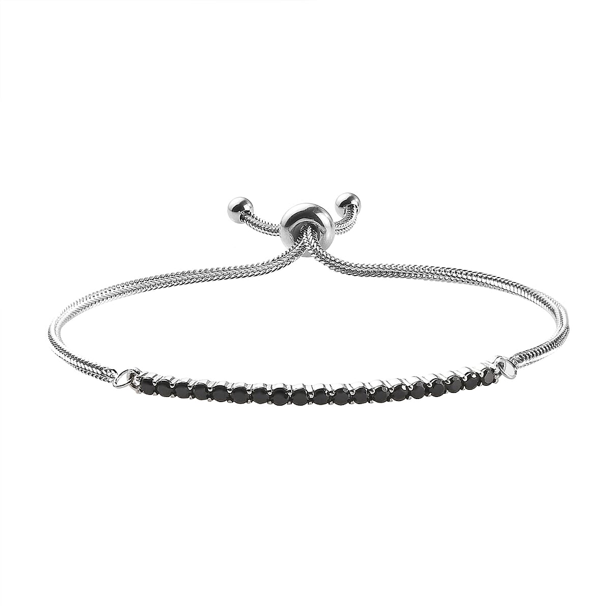 Thai Black Spinel Bolo Bracelet in Stainless Steel 1.33 (9.50 In) 1.15 ctw , Tarnish-Free, Waterproof, Sweat Proof Jewelry