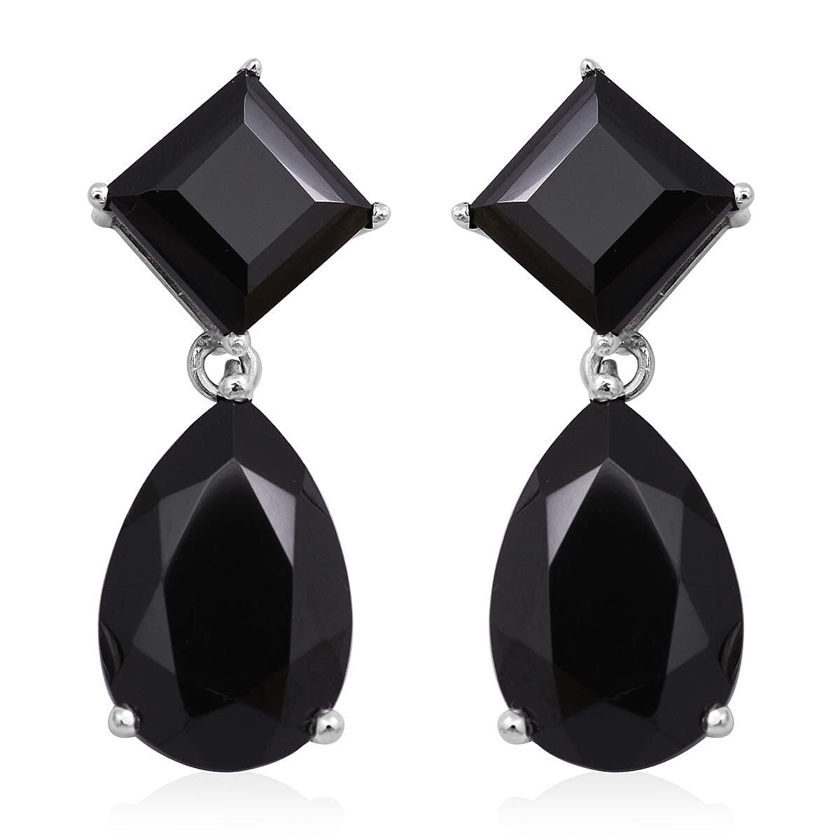 Thai Black Spinel Dangling Earrings in Platinum Over Sterling Silver 20.75 ctw