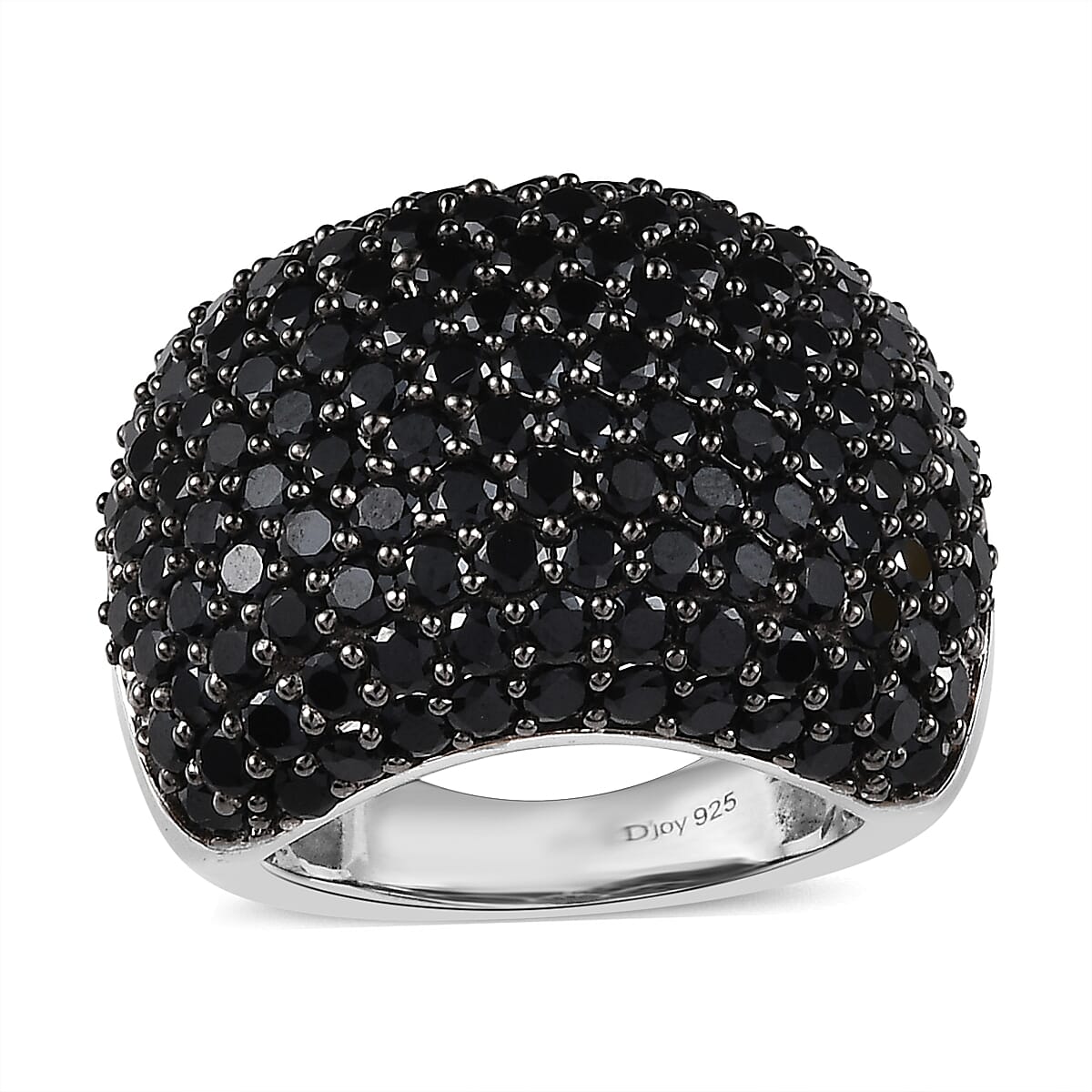 Thai Black Spinel Dome Ring in Platinum Over Sterling Silver (Size 5.0) 9.75 ctw