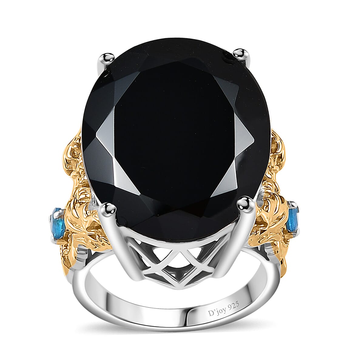 Thai Black Spinel, Malgache Neon Apatite Dragon Ring in Vermeil YG and Rhodium Over Sterling Silver (Size 9.0) 35.00 ctw