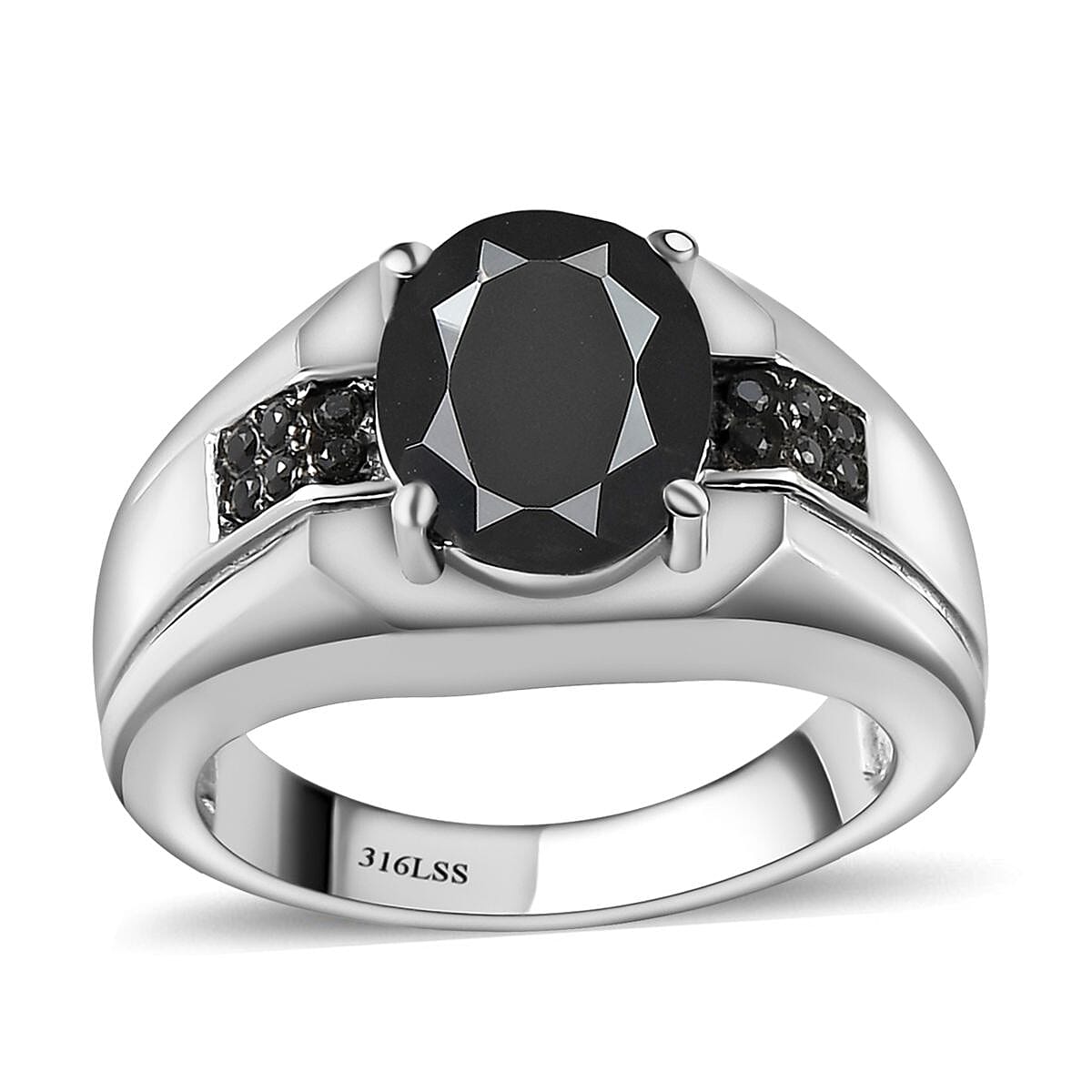 Thai Black Spinel Men's Ring in Stainless Steel (Size 14.0) 4.75 ctw | Tarnish-Free, Waterproof, Sweat Proof Jewelry