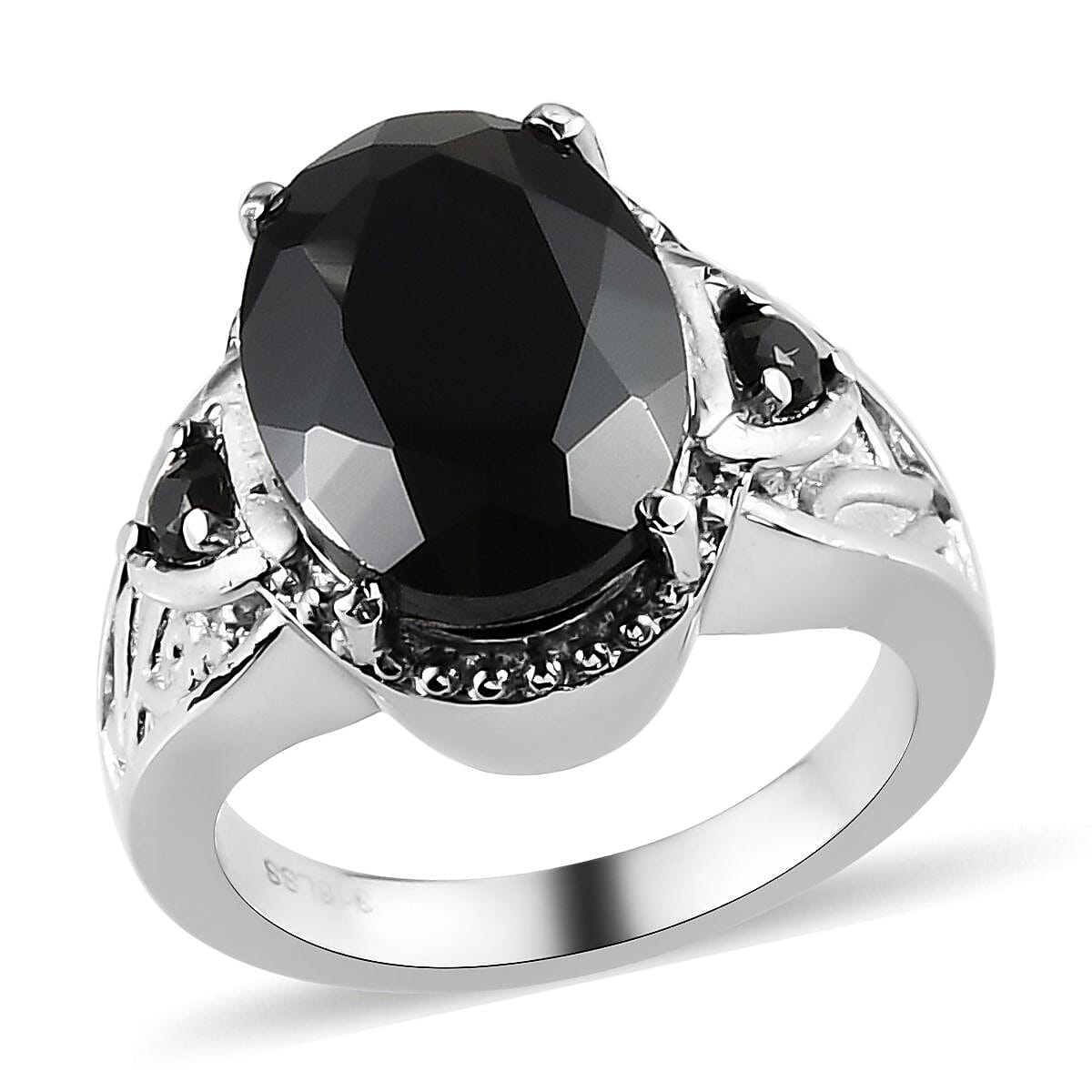 Thai Black Spinel Ring in Stainless Steel (Size 9.0) 7.50 ctw , Tarnish-Free, Waterproof, Sweat Proof Jewelry