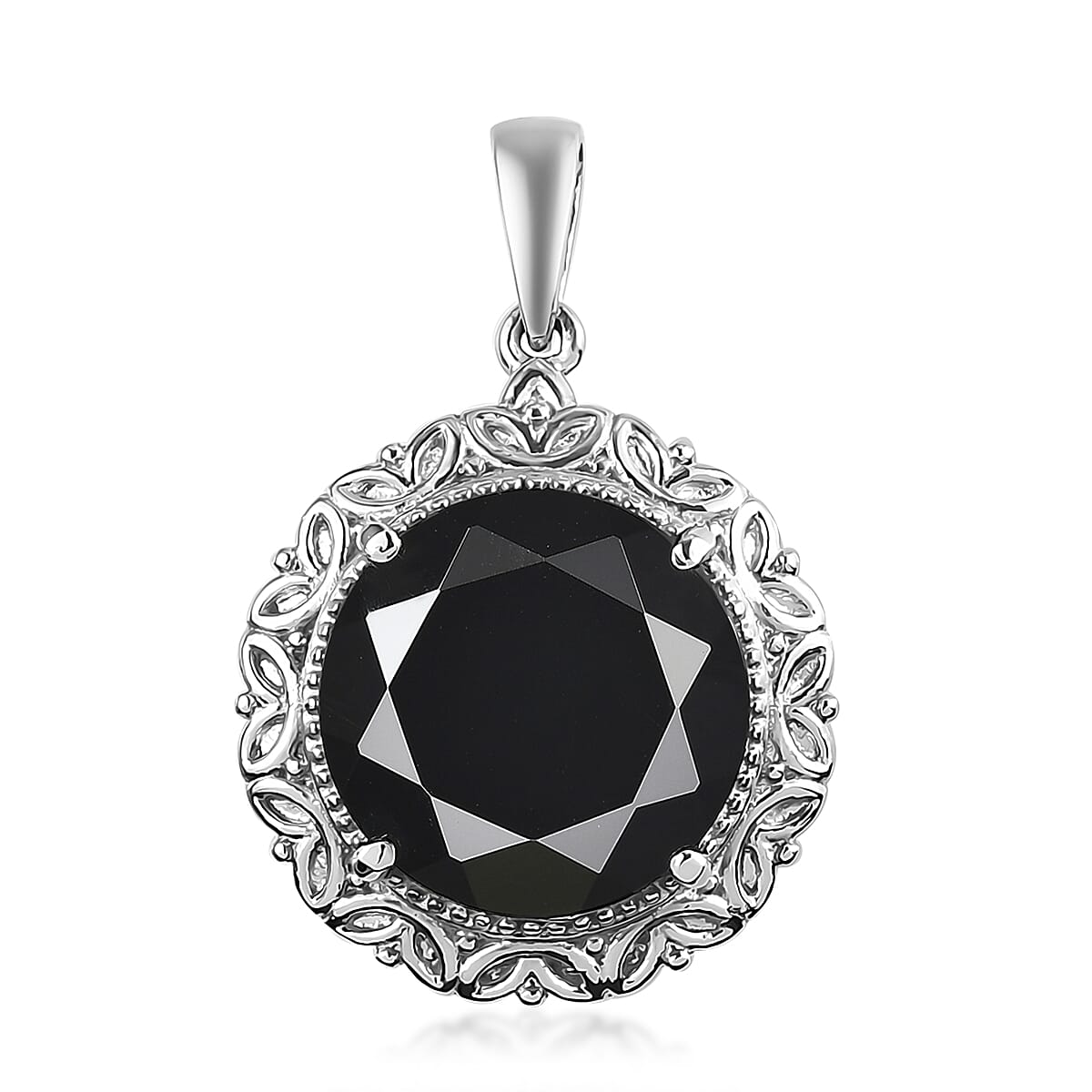 Thai Black Spinel Solitaire Pendant in Stainless Steel 10.35 ctw , Tarnish-Free, Waterproof, Sweat Proof Jewelry