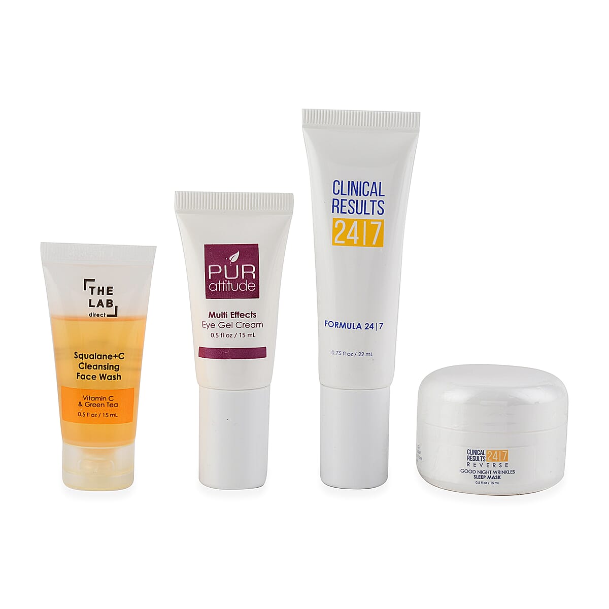 There isn't anything like this beauty beaker discovery set to improve your entire skin regimen! The set includes squalane+C cleansing face wash, a gentle foaming wash that doesn't strip the skin, formula 24|7, which employs the critical anti-aging components that visibly turn back time, multi-effects eye cream, an innovative product that visibly reduces fine lines, wrinkles and good night wrinkles sleep mask. The revolutionary set is meant to help add a radiant glow and perk up your look!