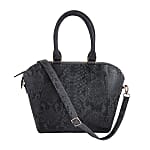 The Grand Pelle Handcrafted 100% Genuine Python Leather Black Color Tote Bag with Long Strap