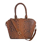 The Grand Pelle Handcrafted 100% Genuine Python Leather Brown Color Tote Bag with Long Strap
