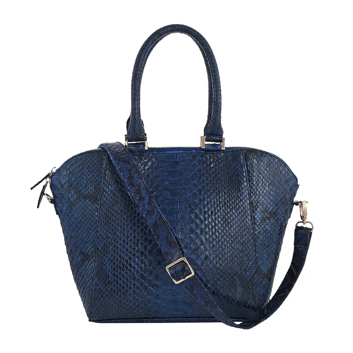 The Grand Pelle Handcrafted 100% Genuine Python Leather Navy Blue Tote Bag with Long Strap