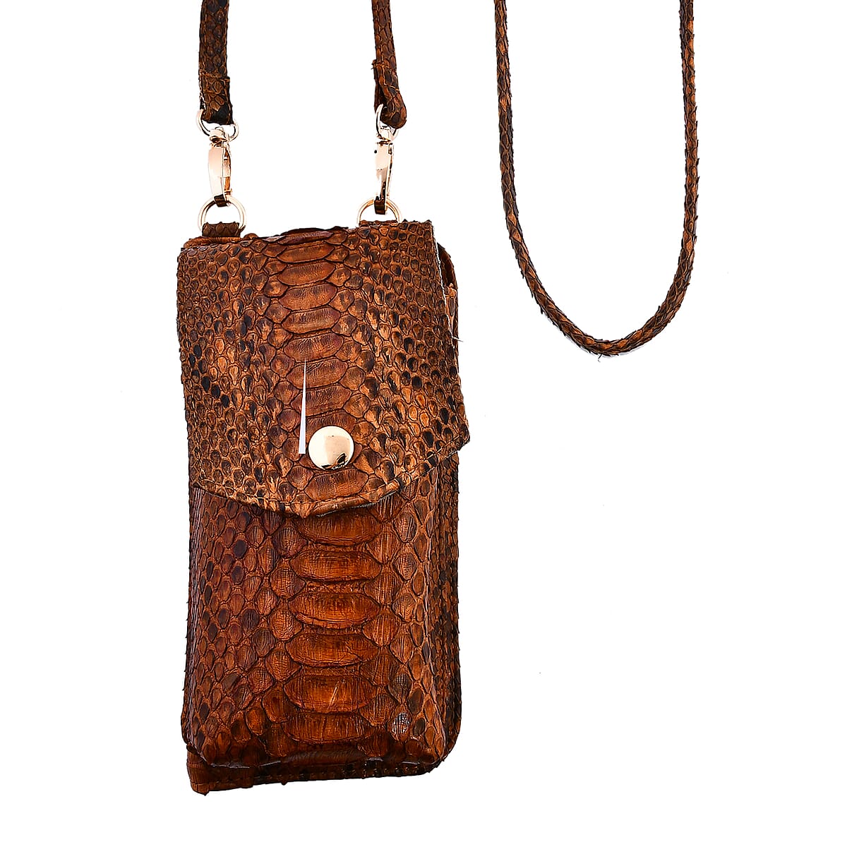 The Grand Pelle Handcrafted Genuine Python Leather Brown Color Crossbody Wallet