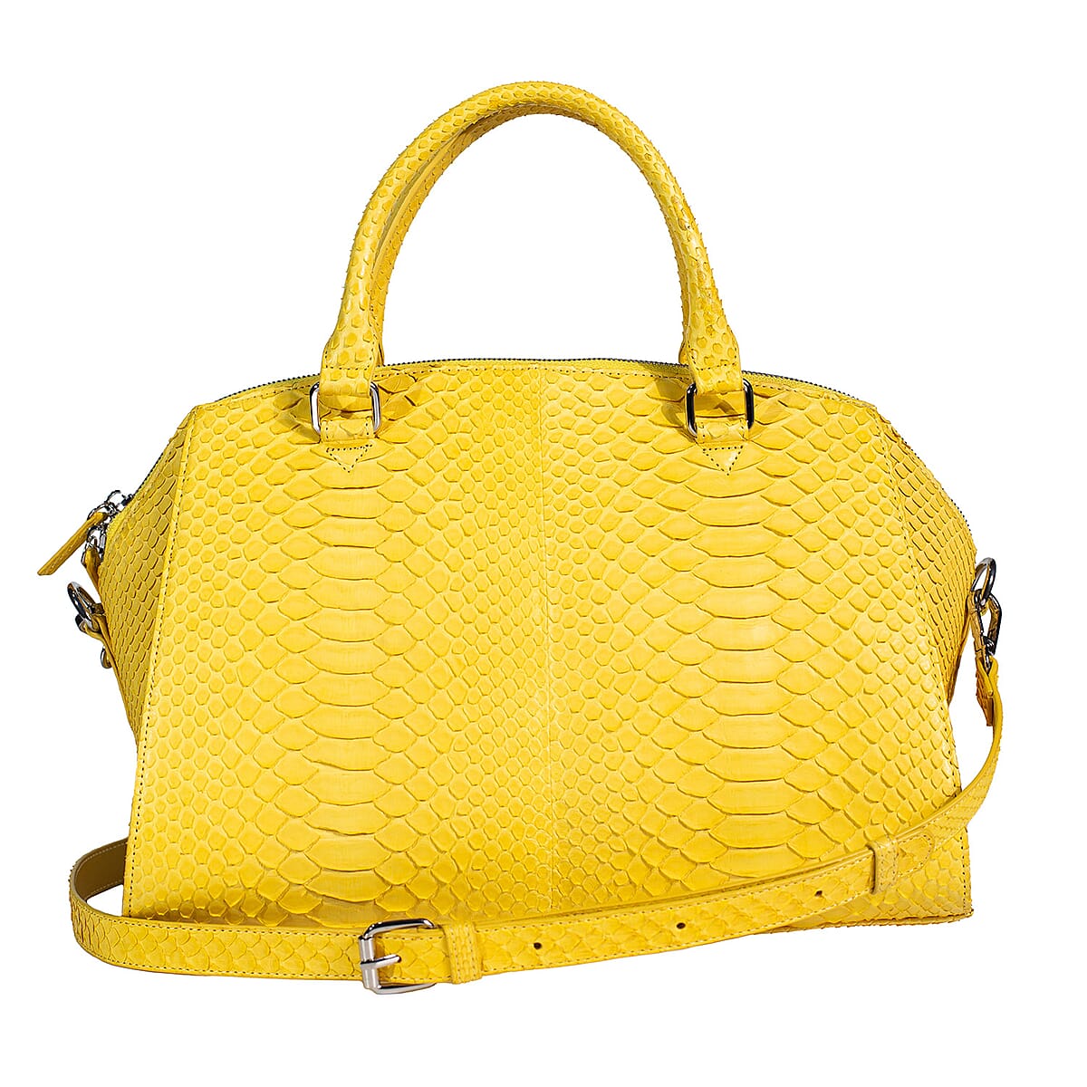 The Grand Pelle Handcrafted Yellow Genuine Python Leather Satchel Bag with Shoulder Strap
