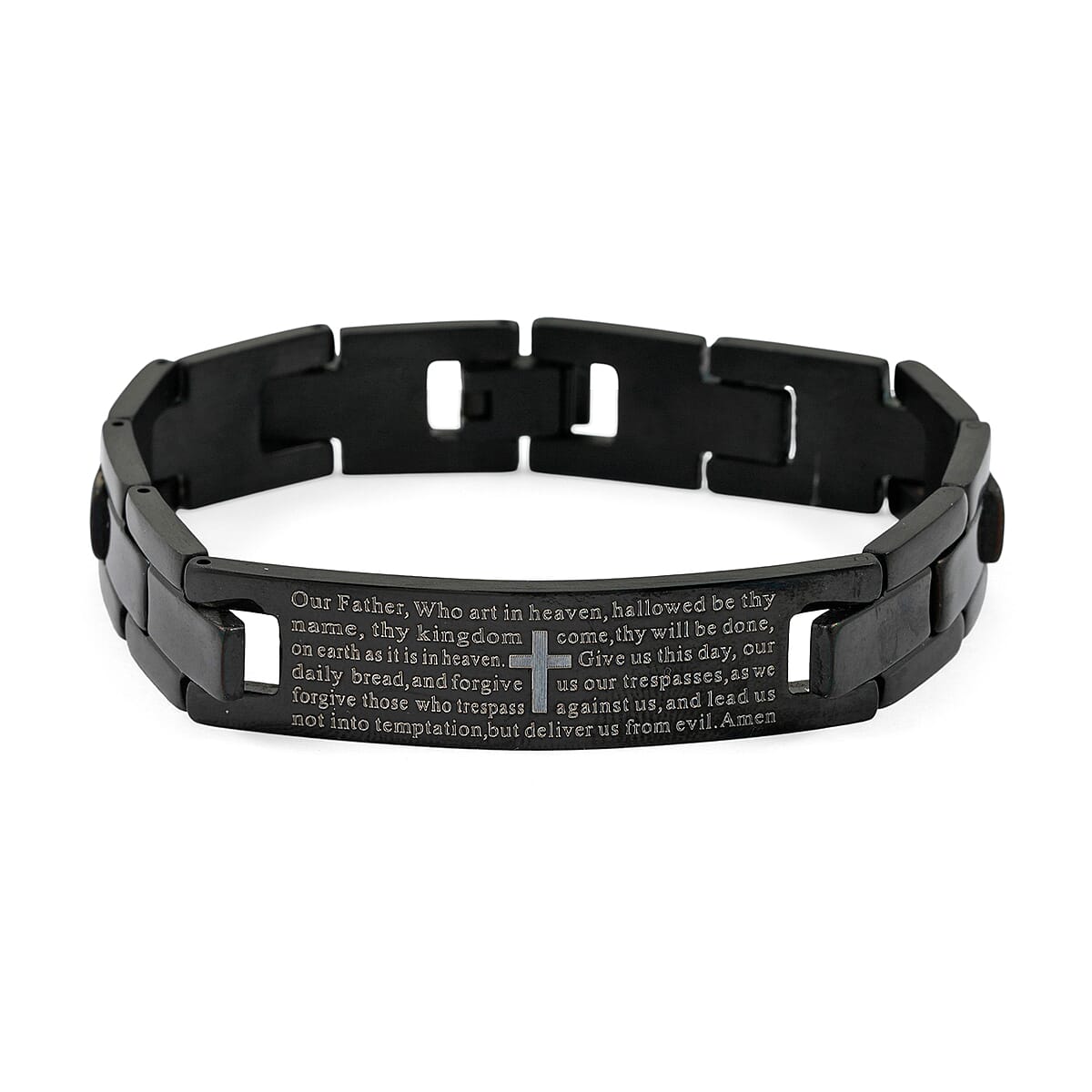 The Lords Prayer Steel Bracelet in Black Silvertone (7.50 In)