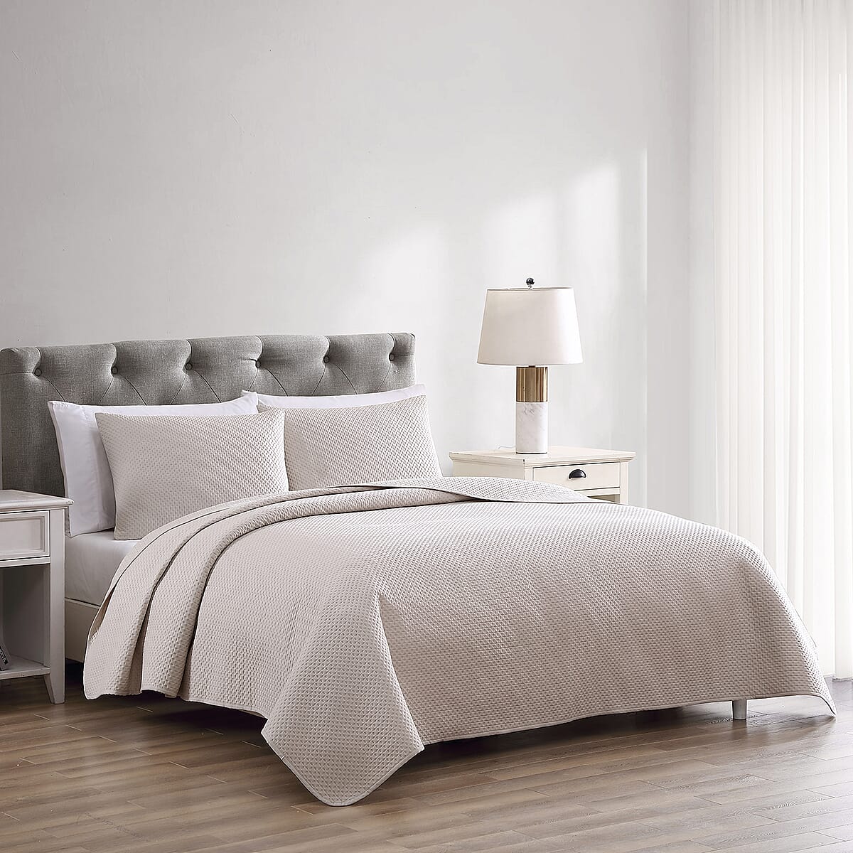 The Nesting Company- Aspen 3 Piece King Quilt Set Taupe | Microfiber Quilt Set | Bed Comforter Set | Bedding Set