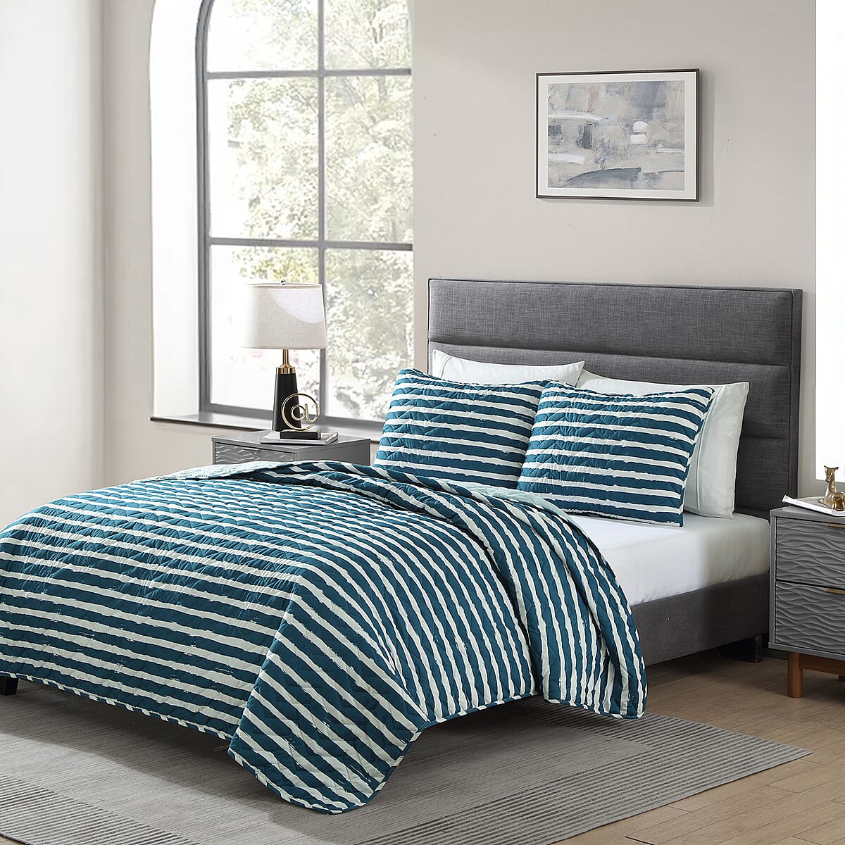 The Nesting Company Navy Ricky Stripe 3pcs Quilt Set - Queen